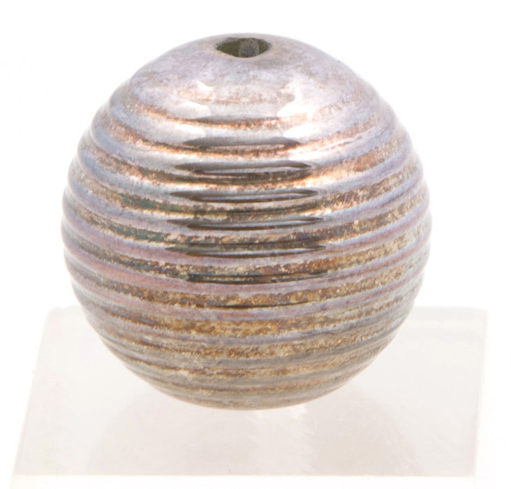 Ossa is the first in our new speckled color family. Based on the popular “speckled luster” test batches OP-434 and OP-507. Ossa is a rich purple lustering glass with thousands of refractive inclusions dispersed throughout each rod. When exposed on the surface, Ossa can be left as a purple speckled glass, or it can be reduced to develop a variety of luster effects. Using variations in flame chemistry, Ossa can produce a solid silver metallic layer, or a multicolored iridescence. When reduced and encased, the inclusions in Ossa produce a textured mother-of-pearl effect reminiscent of some dichroic coatings.