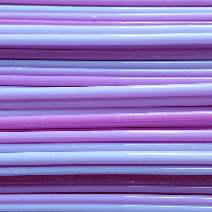All rods are 30cm in length and 3-5mm in diameter with a 96COE.The picture illustrates colour only. The latest batch is variated from pale pink to dark pink in the raw rod