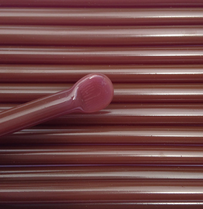• All rods are 42cm in length and 4-5mm diameter. The colour becomes more transparent and a light plum colour once heated.