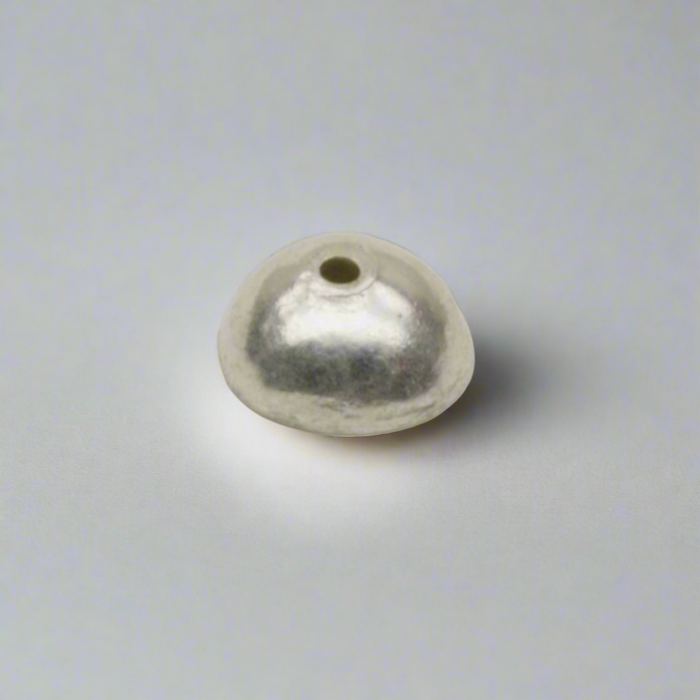 Its unique half-cut design offers a modern, geometric aesthetic, making it a perfect for capping a glass bead or book-ending a bead. The polished sterling silver finish adds a touch of elegance and sophistication, while its versatile size ensures compatibility with a variety of bracelets, necklaces, and other accessories.