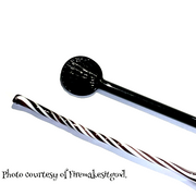 The Lauscha black stringers are slighter denser and darker in colour than the Effetre black. Comparing Effetre and Lauscha blacks - Lauscha is more viscous and slightly stiffer, making it easier to manage as a stringer but more difficult to apply consistent small dots.