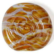 A handpull layered colour. It can devitrify. Created Silvered Calico Stringers and layer over Dark Ivory.
