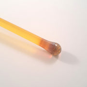 This colour will burn so work in a cooler flame. This colour gives light earth coloured tones with hints of pale yellow, green and purple. When applied over transparent cobalt blue it resulted in a nice bright opaque blue. When applied over a striking orange it created blues, purples and pale green.