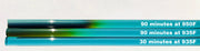 An opaque Celadon Blue can develop with extended annealing, about one hour at 950F. Lower annealing temperatures and/or shorter times maintain the transparent teal.