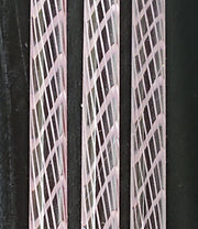 Pink twisted and encased in clear. Reticello or Zanfirico as its also known is a hand pulled cane which is very popular with the traditional glass blowers. These canes are added to, blown glass pieces with ribbons of fine twisting colours and now they are available to incorporate in your bead designs