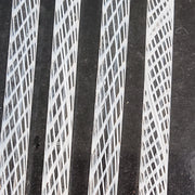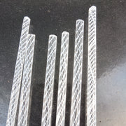White twisted and encased in clear. Reticello or Zanfirico, as its also known, is a hand-pulled cane which is very popular with the traditional glass blowers. These canes are added to blown glass pieces with ribbons of fine twisting colours, and now they are available to incorporate in your bead designs