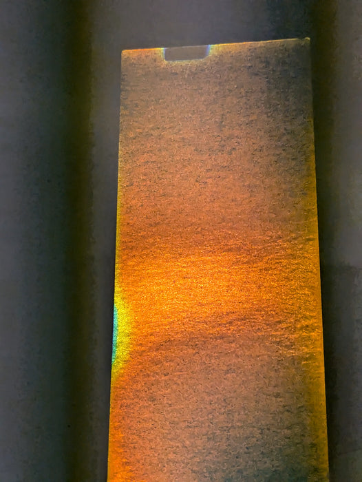 The first 3 photos are the actual paper. The last is the same colour coating on black glass (note the colour is a single colour - lights makes it look patterned but it isn't! Very hard to photograph)