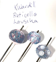 Working notes: This is a transparent rod with stripes of White, Blue and Pink. Lauscha glass is known for its smooth texture and its incredible clarity. This rod can be pulled into stringers, twisties, or used as is.