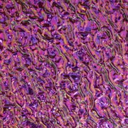 The “Transmitted Colour” is the colour you see in a clear piece of glass when you can actually see through the glass. The “Reflected Colour” is the colour you see in a clear or opaque piece of glass when the light bounces off of the surface of the glass. For example “Green/ Magenta Blue” will be Green in transmission and Magenta Blue in reflection. If this sheet were put on a black background, you would only see its reflection of Magenta Blue (as per image).