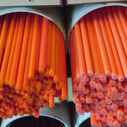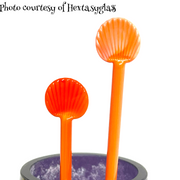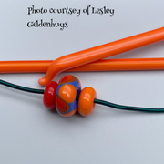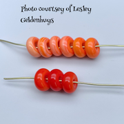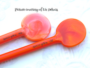 "From the paddle made at the end of the rod, it is clear that the colours used to create this luscious shade show dark apricot, deep yellow and dark shades of blood orange. The other rod of apricot yellow shows definitive shades of soft coral/apricot colours (and at times pink) and is less vibrant than the older rod of the same colour."