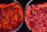 "The unknown batch is darker, more translucent and tangerinish in colour. The rod is smooth and when looked at the end has concentric circles of colour going from yellow at the core to orange on the outside. The 2017 batch is lighter, more of an apricot colour and more opaque looking. The rod is rough (similar to ivory in texture), and when looked at the end on it has mottled orange and pinkish variations."