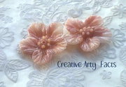 Here I used a brass petal shaping tool to create detail to the flower beads, noting that where the glass remained thick, the colour developed a rich and intense array of pink/pecan colours.