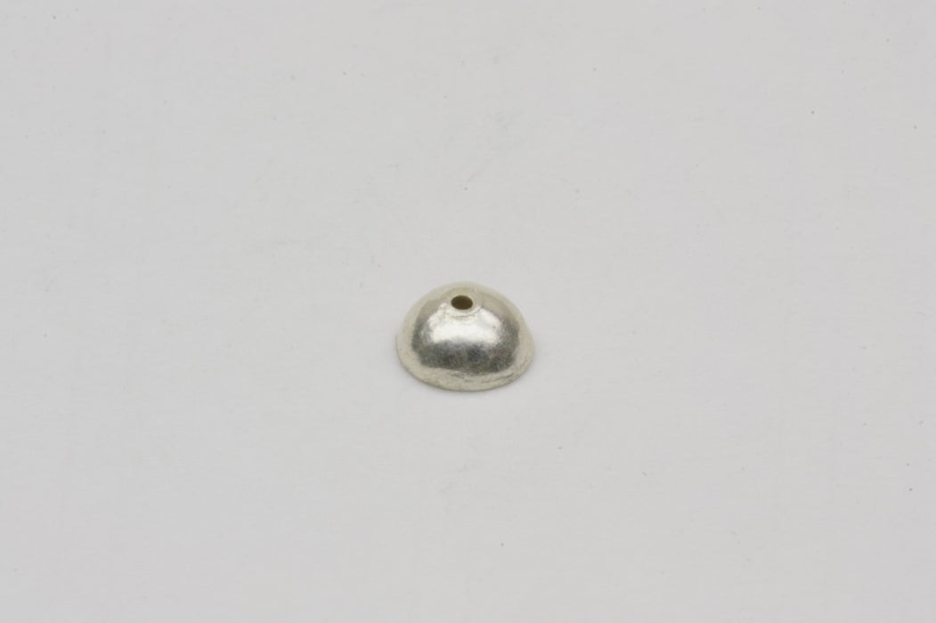 Its unique half-cut design offers a modern, geometric aesthetic, making it a perfect for capping a glass bead or book-ending a bead. The polished sterling silver finish adds a touch of elegance and sophistication, while its versatile size ensures compatibility with a variety of bracelets, necklaces, and other accessories.