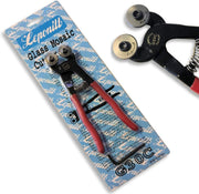 Economical professional cutter for mosaic glass. A slight turn of the carbide wheel brings a sharp edge to the glass as the cutting surface wears.
