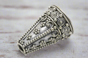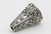 Luxuriously Detailed Large Cone Bead Charm Sterling Silver