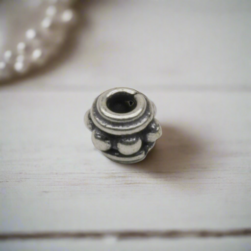 View full detailsThis antique silver charm bead is a stunning addition to any jewellery design, featuring an intricate ornate design that adds a vintage-inspired el...