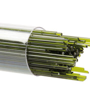 Threads of glass pulled from re-melted Bullseye Compatible sheet. For use in kilnforming or torchworking.