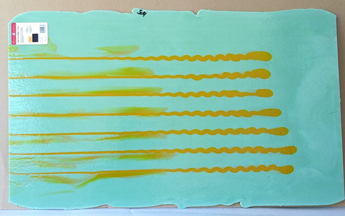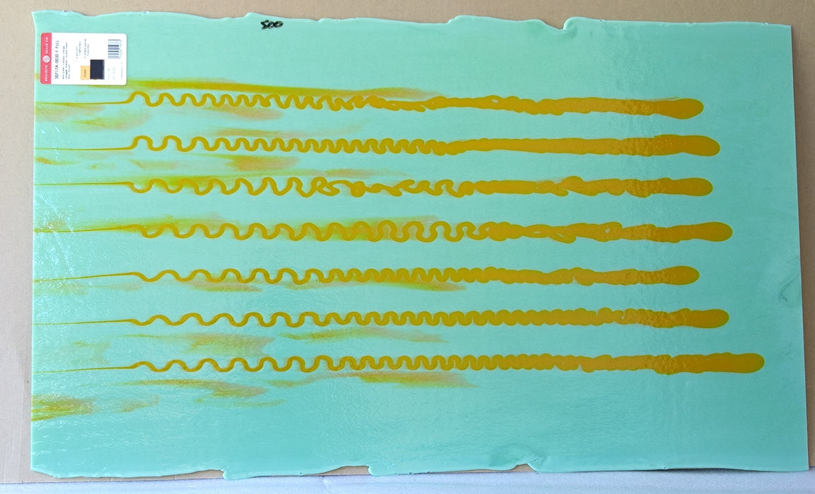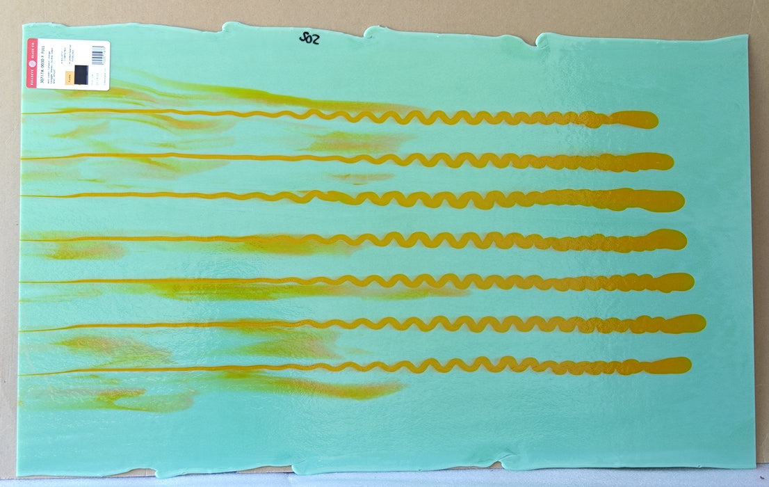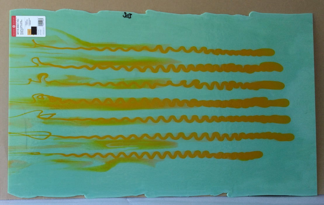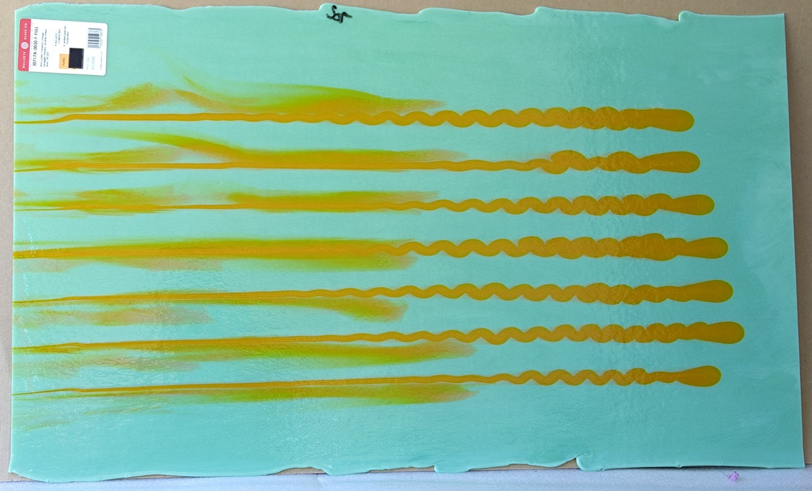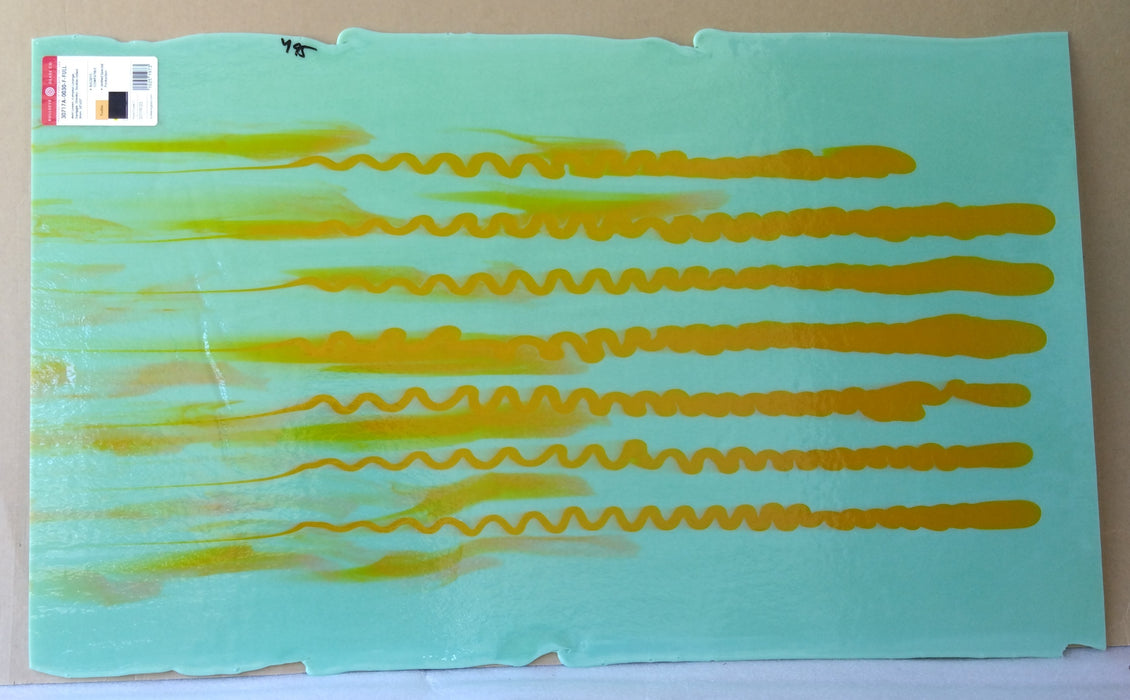 Bullseye Glascadia: Mint Green & Pumpkin Orange Squiggle Bullseye Sheet 30717A 3MM