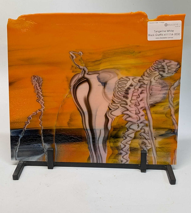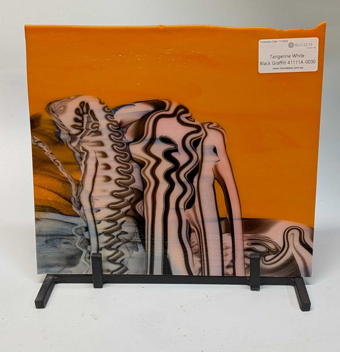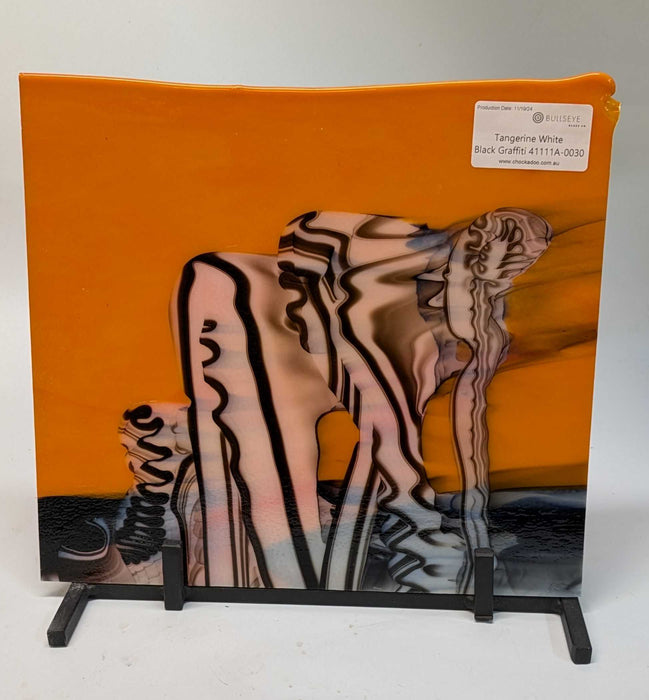 Bullseye Glascadia: Tangerine, White, Black Opaque Bullseye Sheet 41111A 3MM