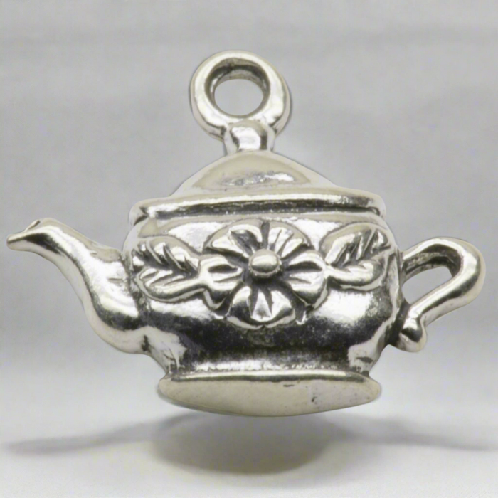 Kettle with Flower Dangle Charm Sterling Silver