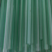 Working notes: This rod has stripes of White and transparent Green in the core and encased in clear. The ends could be cut to make millifiori - great for flower centres or pulled into stringer for vines behind flowers. The amazing lines it gives when spiraled around the core of a bead and it's optical qualities are just crystal clear, no bubbles.