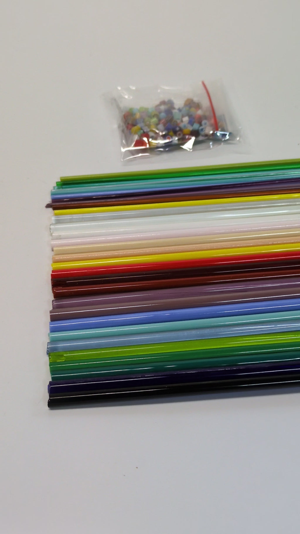 Colour range is from the Effetre glass (COE104). The colours included in the pack will be: