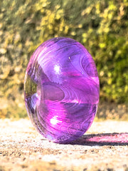 Oracle-Violet Opal, a violet slow opal, same as test batch 803.AuOpl. This opal is a striking glass that produces a range of misty opal violet tones. It easily resets to transparent pale violet, step one of the striking process. After resetting, allow it to cool to a faint opalescence. O-V-O is slower than our regular Oracle-Opal, and may require a cooler flame to strike. Longer annealing times or higher annealing temperatures can develop more opacity. We anneal at 920°F for two hours or more.
