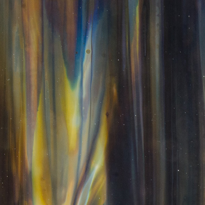 Each sheet contains a reactive combination that will continue to develop with heatwork. Samples shown have been fired to a single full fuse of 1490°F for :10. Fired characteristics may include areas of opacity, transparency, mottling, streakiness and polychromatic effects ranging from earth to jewel tones. Expect variation, which can occur within a single sheet & throughout production runs.