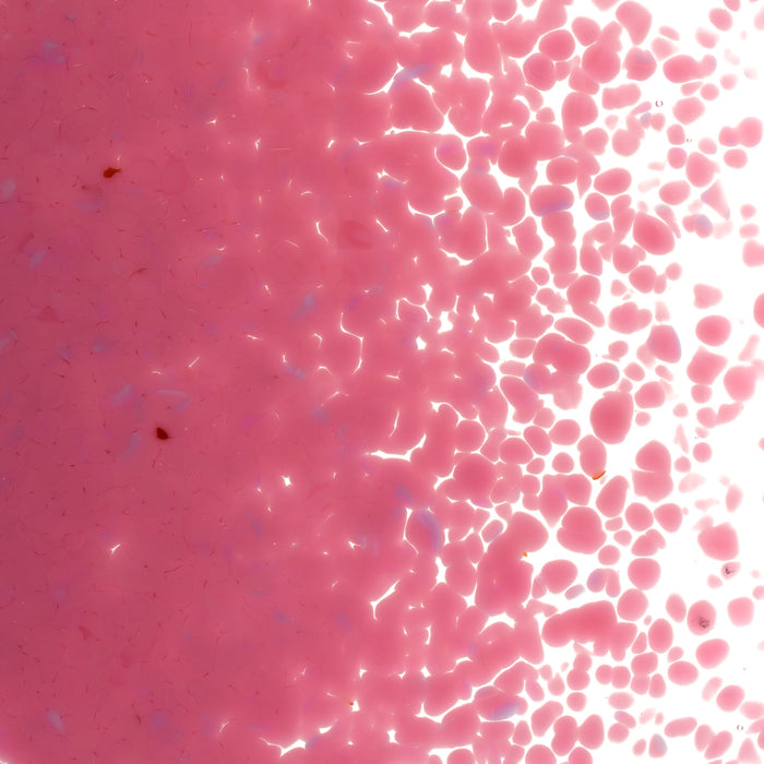Many glasses that Bullseye produces appear pale or even colourless in their cold form but “strike” or mature to a target colour when fired to the right temperature. These styles are marked with the symbol above.