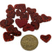 The extra large hearts have approximately 5 hearts in a 10 gram pack and approximately 16 in a 25 gram pack. They are approximately 17-20mm at their widest point.