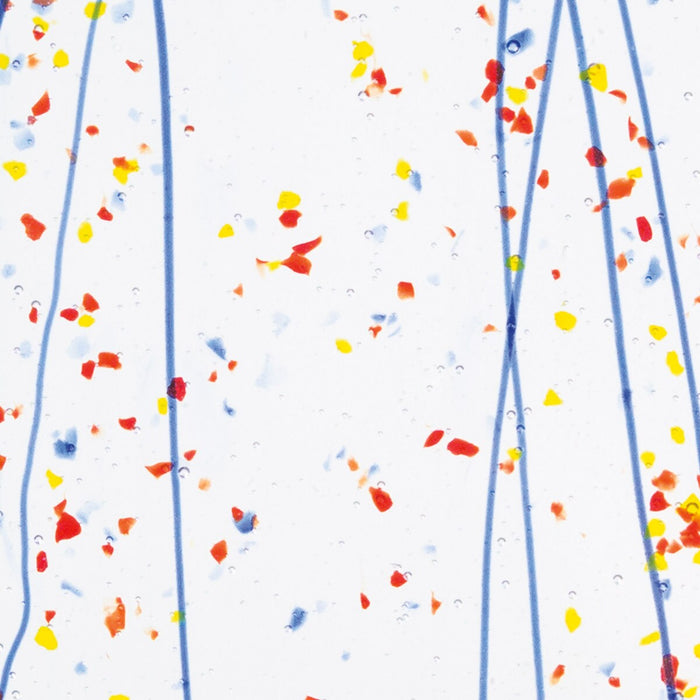 Yellow Blue and Red Frit, Blue Streamers Clear Base Collage Bullseye Sheet 4223 3MM
